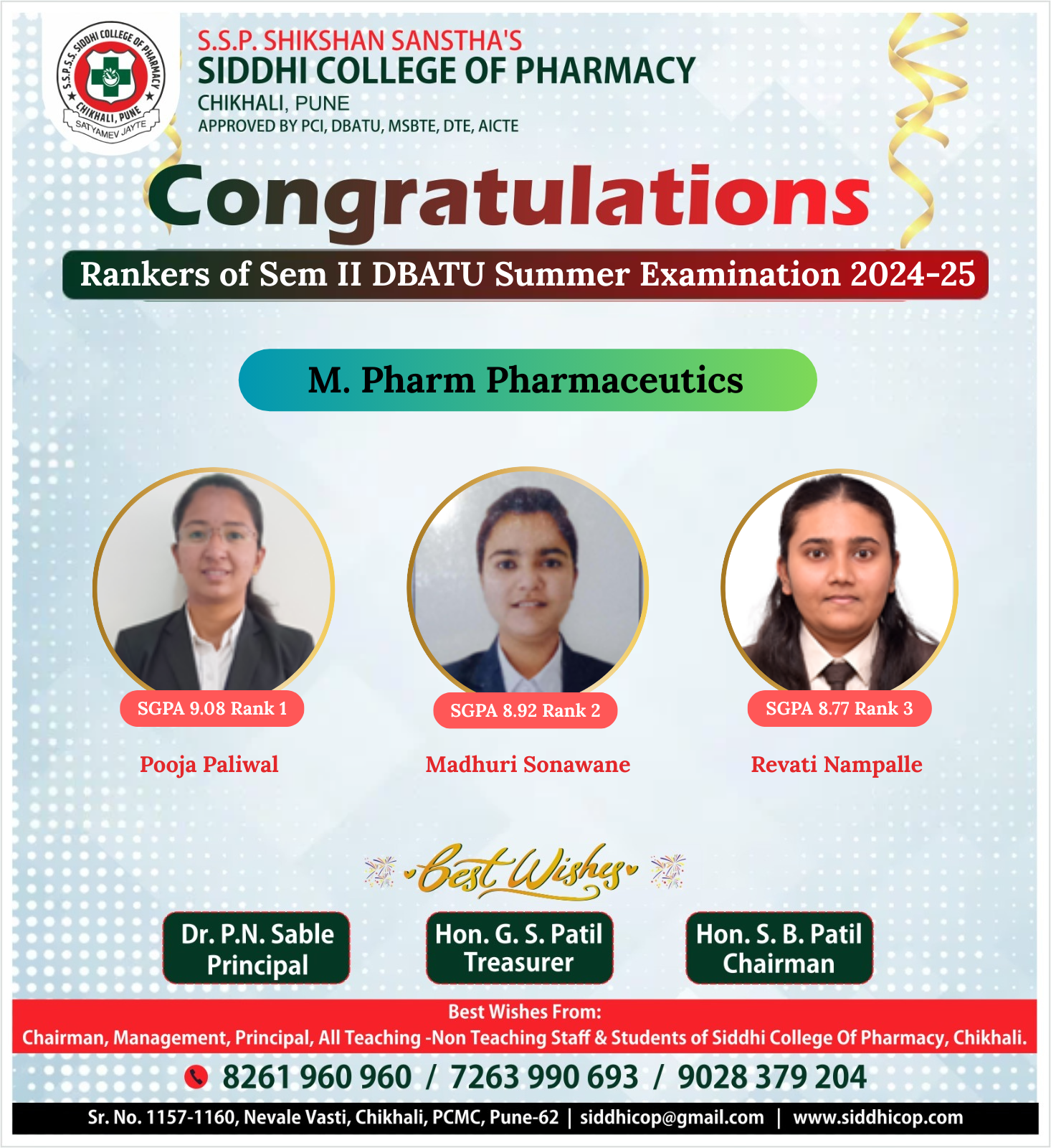 M. Pharm in Pharmaceutics Result
